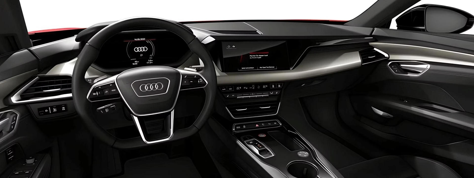 Por dentro, a cabine do Audi e-tron GT proporciona uma atmosfera de monoposto, com posição baixa de assento, painel de instrumentos levemente apontado para o motorista e amplo console central.